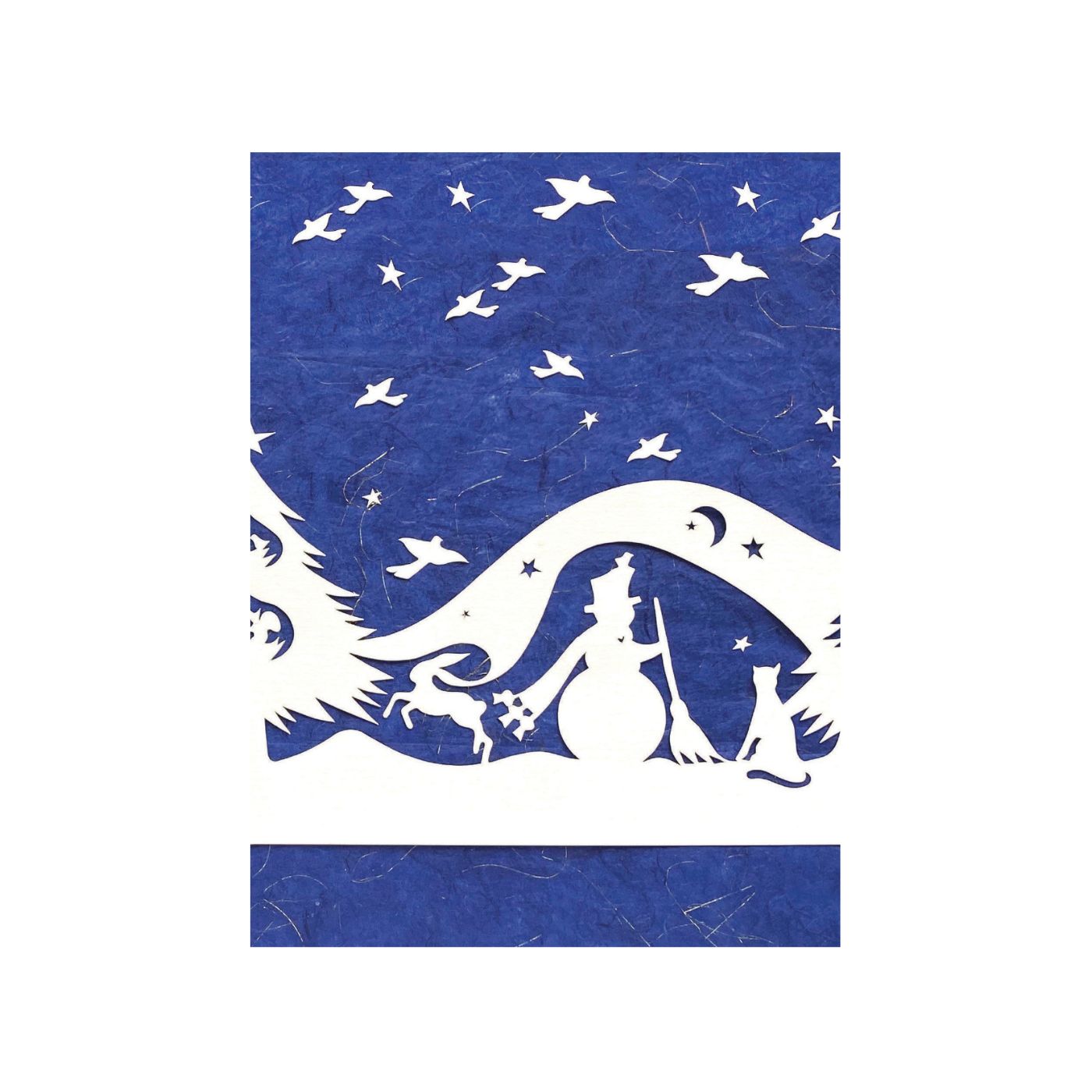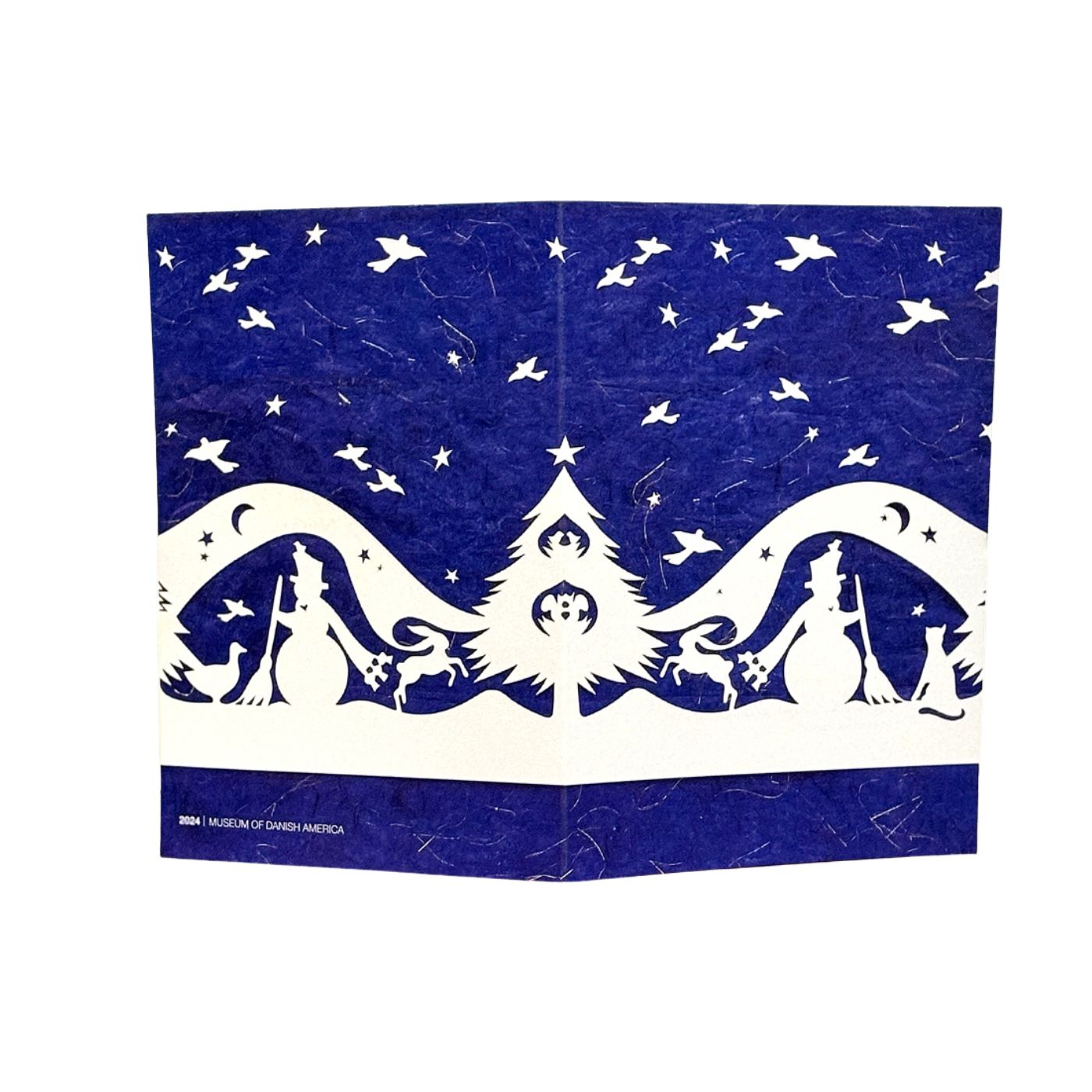 Danish-American artist Cynthia McKeen created this unique snowman runner design by cutting shapes from folded paper, an art form known as papirklip.