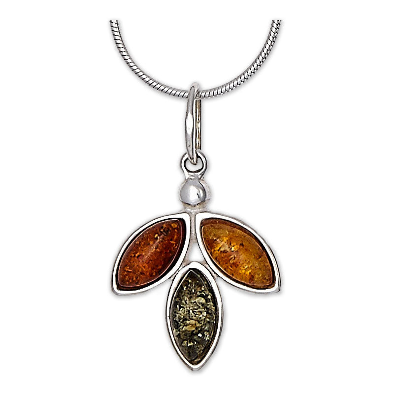 Cognac, sage, and citrine marquise-shaped stones are set in sterling silver. Together they create a lovely pendant on an 18-inch cable chain (snake chain is pictured). Pendant length approximately 1 inch.