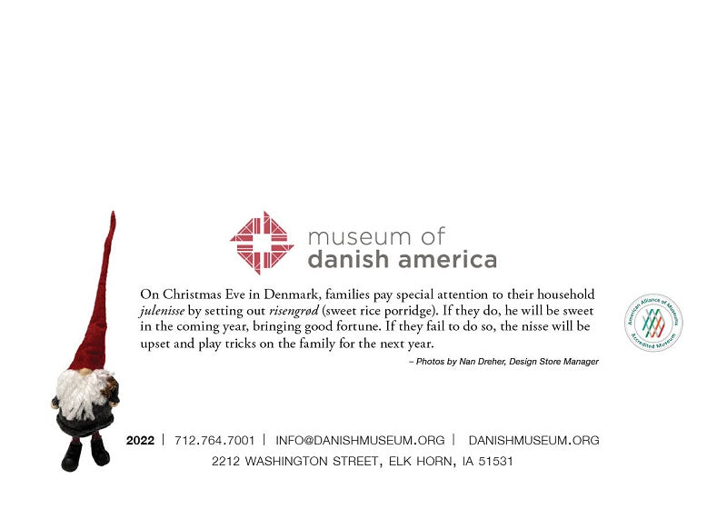 On Christmas Eve in Denmark, families pay special attention to their household julenisse by setting out risengrod (sweet rice porridge). If they do, he will be sweet in the coming year, bringing good fortune. If they fail to do so, the nisse will be upset and play tricks on the family for the next year.