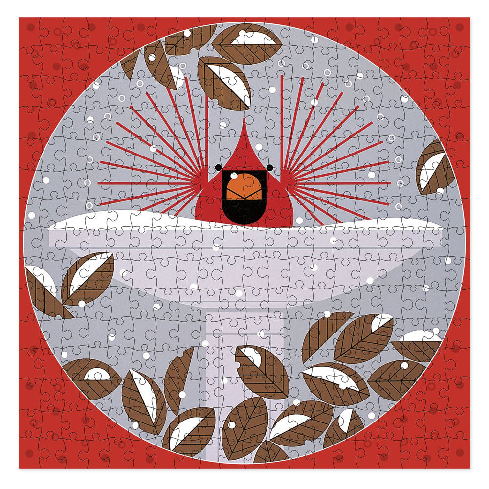 In typical Charley Harper fashion, the midcentury modern artist shows off his classic humor and minimal realist style, giving the bright cardinal an even brighter personality. Harper joked, "How can he dry himself without a towel? Maybe freeze-dry?" But you can snuggle up and enjoy B-r-r-r-r-rdbath with this cozy 300-piece puzzle.