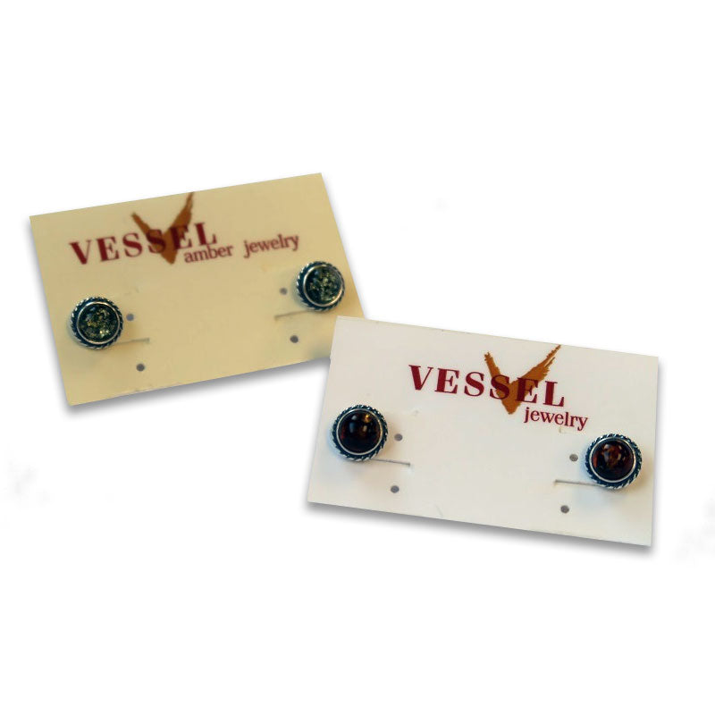 Looking for something small but slightly ornate? These earrings fit the bill! Circular-shaped amber or sage green pieces set in a beautifully detailed sterling silver setting.