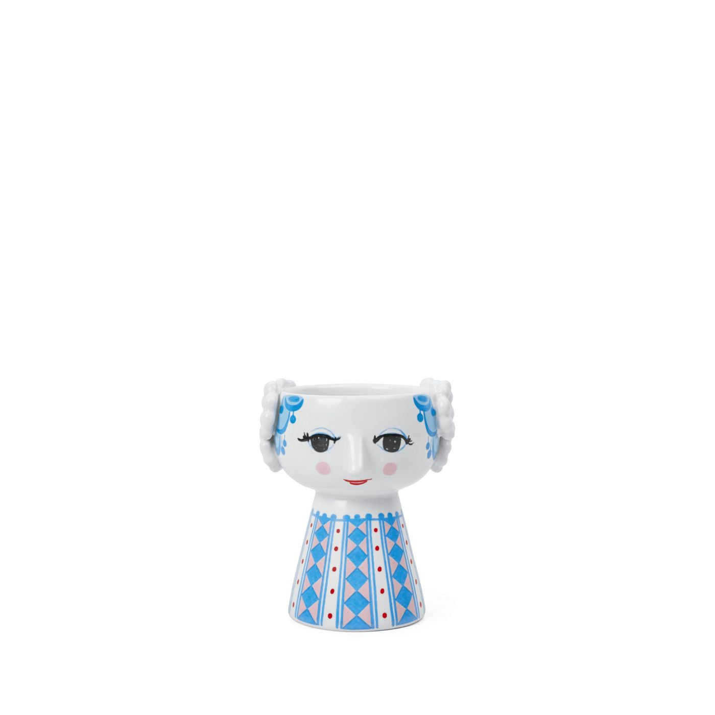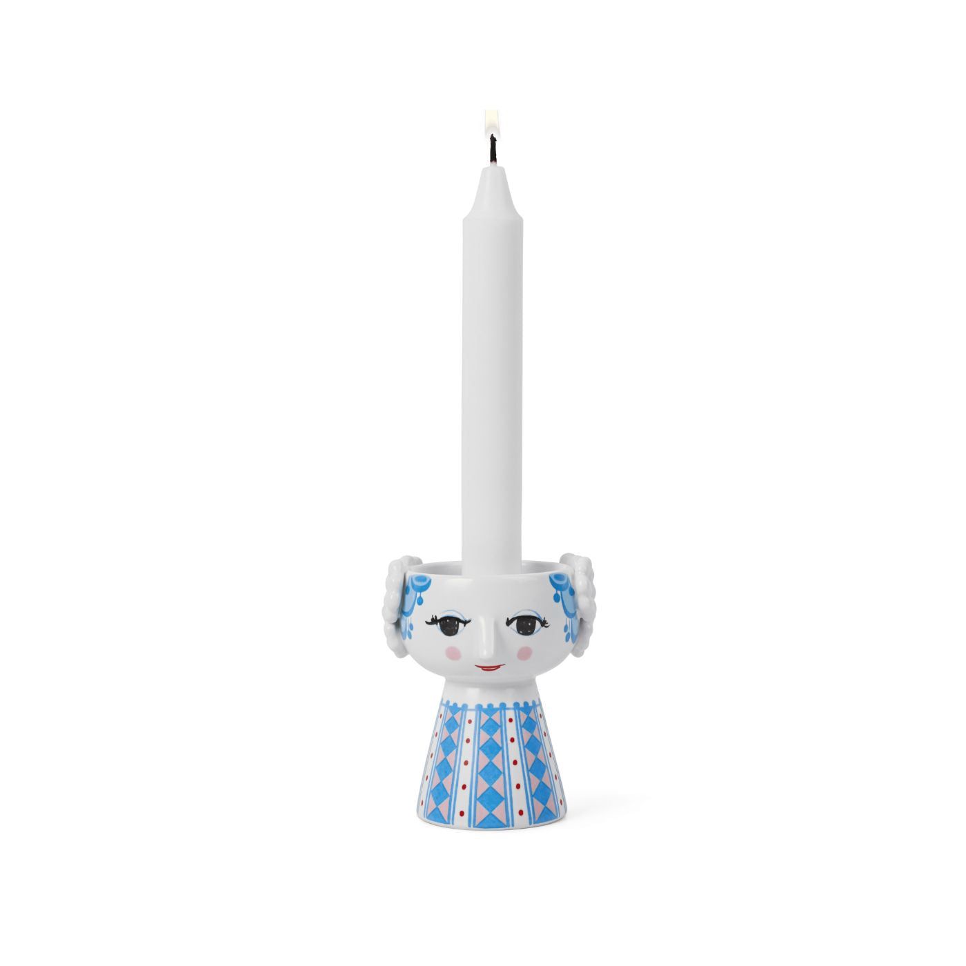 Bjørn Wiinblad’s style is anything but minimalist. It is lavish, original and wonderful – and strongly defined by vibrant colours and a unique look. You’ll also find many of his quirky and artistic decorations on his Eva candleholders. The design is a true mix of colours and geometric shapes with a hand-drawn feel that somehow fits perfectly together. And with this beautiful Eva candleholder from Bjørn Wiinblad in a lovely blue shade, you can bring quirky design in full bloom to anywhere in your home. It is decorated with blue hair and a colourful dress with a stunning diamond pattern in blue and pink shades, supplemented with rows of red dots. The Eva candleholder exudes a love of lavishness and is perfect for both tealights and candles – or on its own as a small sculptural ornament in your interior design. The Eva candleholder spreads joy on the table or shelf, adding a little more light and colour to your day – in true Bjørn Wiinblad style. Bjørn Wiinblad was a cheerful artist with a big and colourful personality who did things his way and was not afraid to dream and think big. His spirit comes to light in the one-of-a-kind Eva, who encourages us to express our own style and personality in our interior design. One thing is for certain: Life is never dull when Eva moves in.