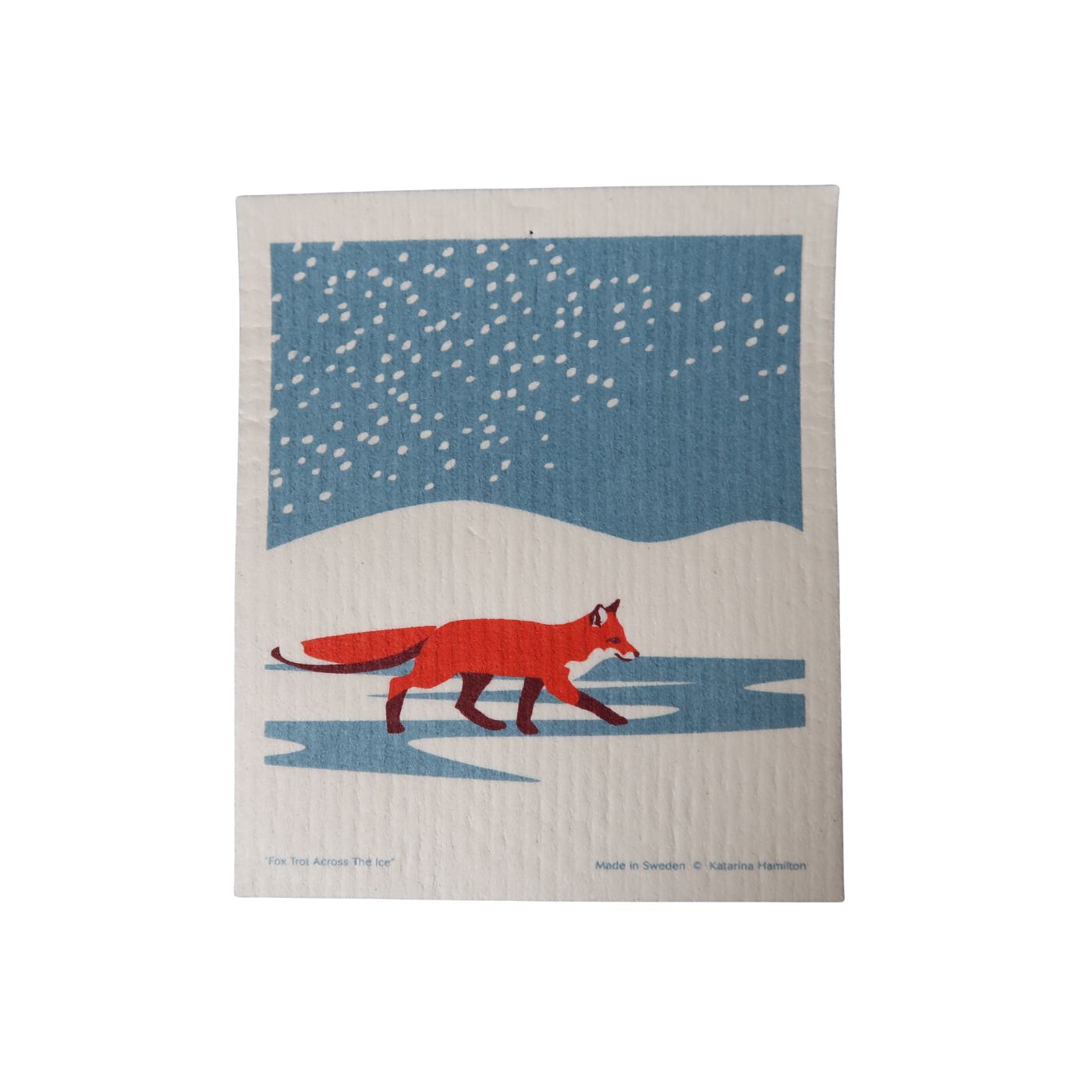 This sponge-like cloth softens when wet, and with a lovely illustration of a fox on a snowy day design, it's a lovely addition to any kitchen sink. Works great in the bathtub or shower too. Measures 6.75 x 8 inches.