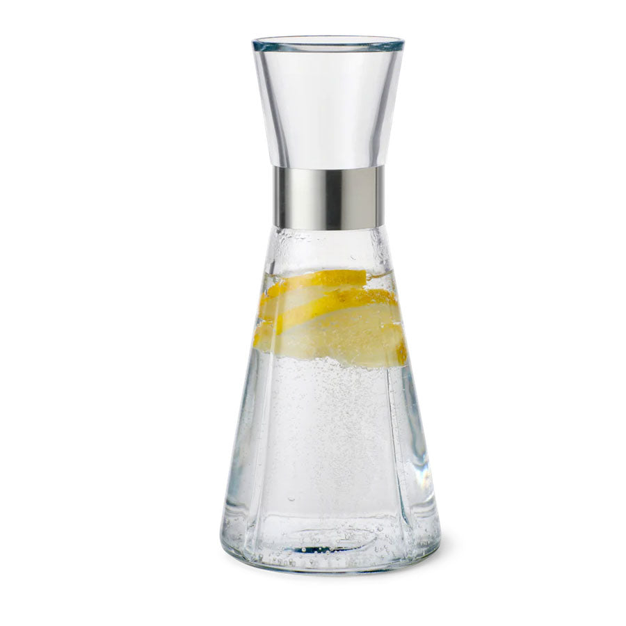 The grooves on the collar of this simple carafe provide an excellent grip. Serve ice-cold, refreshing water and add mint, slices of lemon, or frozen berries for a twist. It's a practical kitchen staple that will last a lifetime and is easy to combine with other tableware and cutlery.