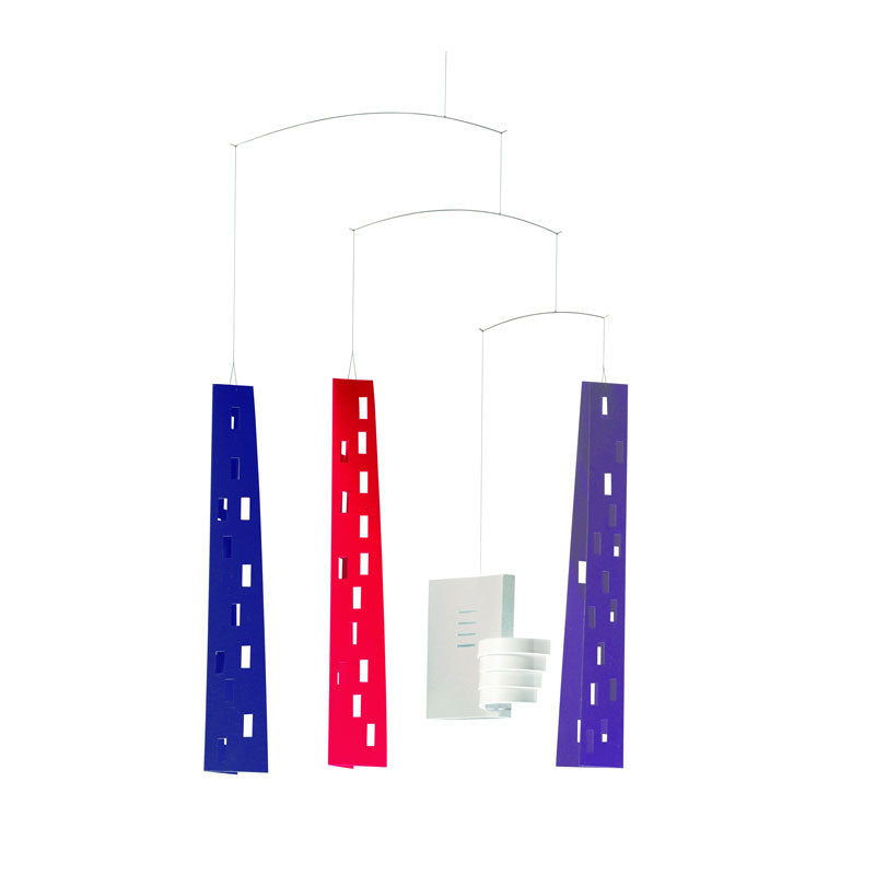 Like the actual architecture, the new mobile is spectacular in its simplicity, contrasting Frank Lloyd Wright's 1959 spiral with the rectangular shape of its 1992 annex and the surrounding skyscrapers. This new Guggenheim Mobile not only explores the architecture but, as with all Flensted Mobiles, also allows the shapes to move and change. Movement allows light, seen through the tens of tiny windows in each of the buildings, to change in a similar way to the building itself, which ingeniously used its circular structure to allow sunlight to filter through and reflect light naturally: a wonderful way to view art!