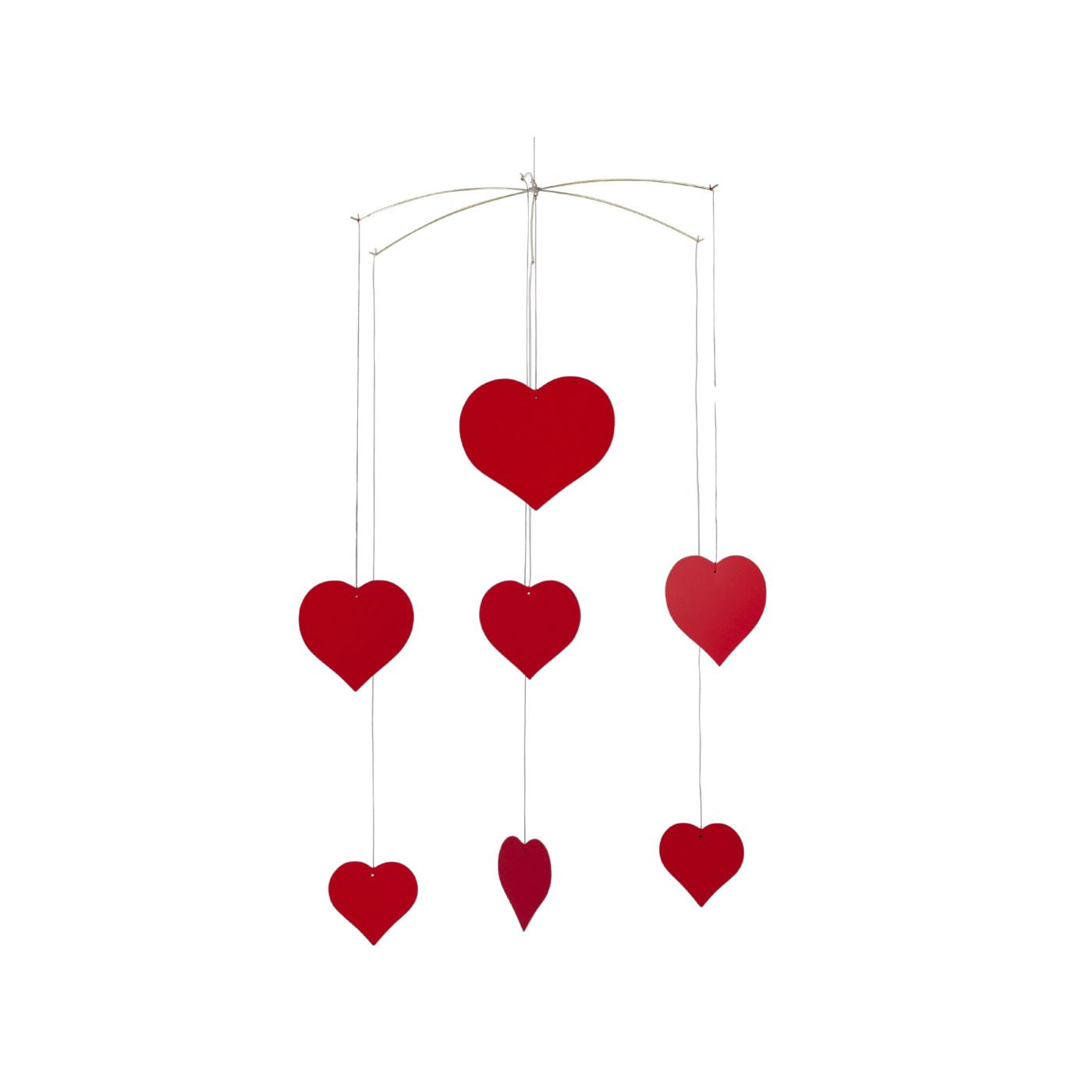 Happy Hearts was designed by Christian Flensted in 1965. This moving object features seven warm red hearts on brass bars, making it an ideal gift for your chosen one. Perfect for hanging in various rooms, from the living room and bedroom to the kitchen and office.