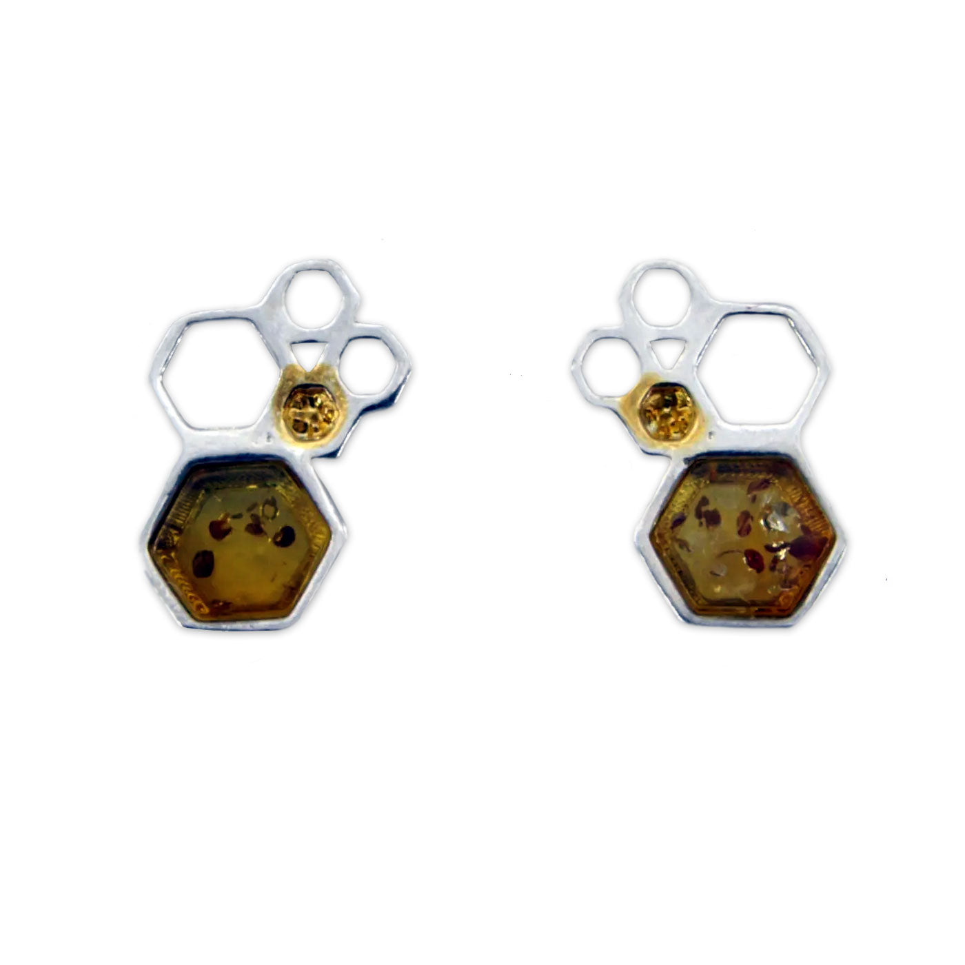 These small, simple posts feature a unique honeycomb design with citrine amber.