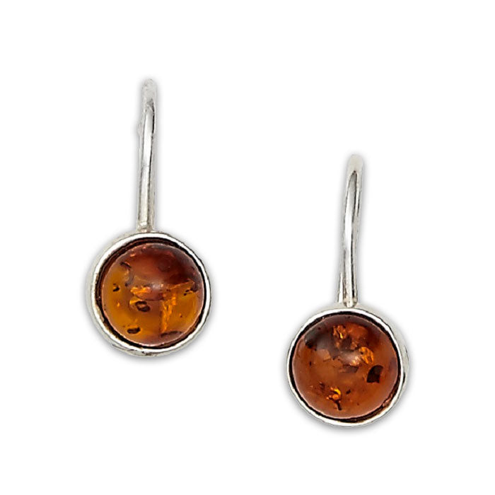 Round, domed honey amber stones set in sterling silver on delicate lock wires.