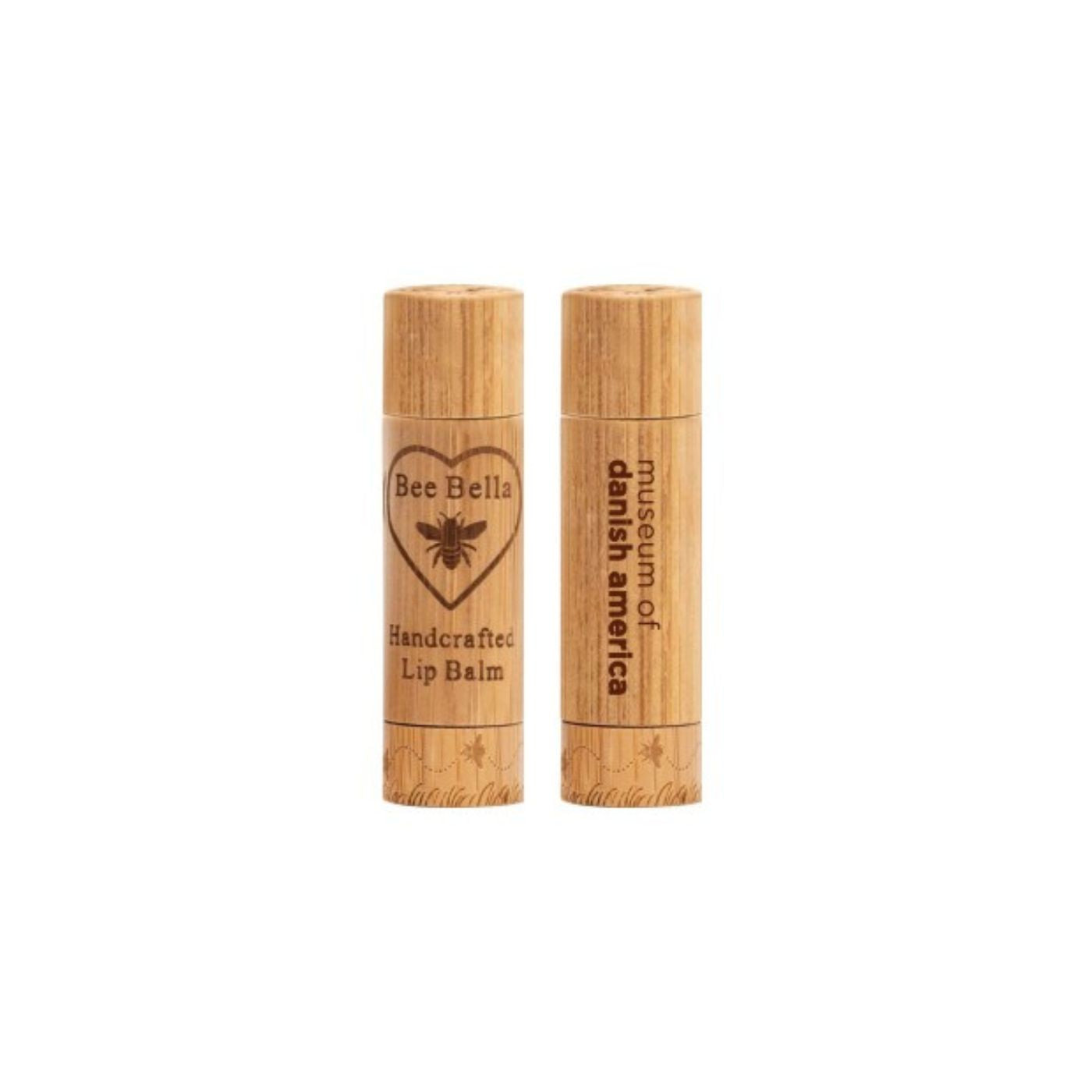 Museum of Danish America and Bee Bella Lip Balm logos branded on bamboo tube.