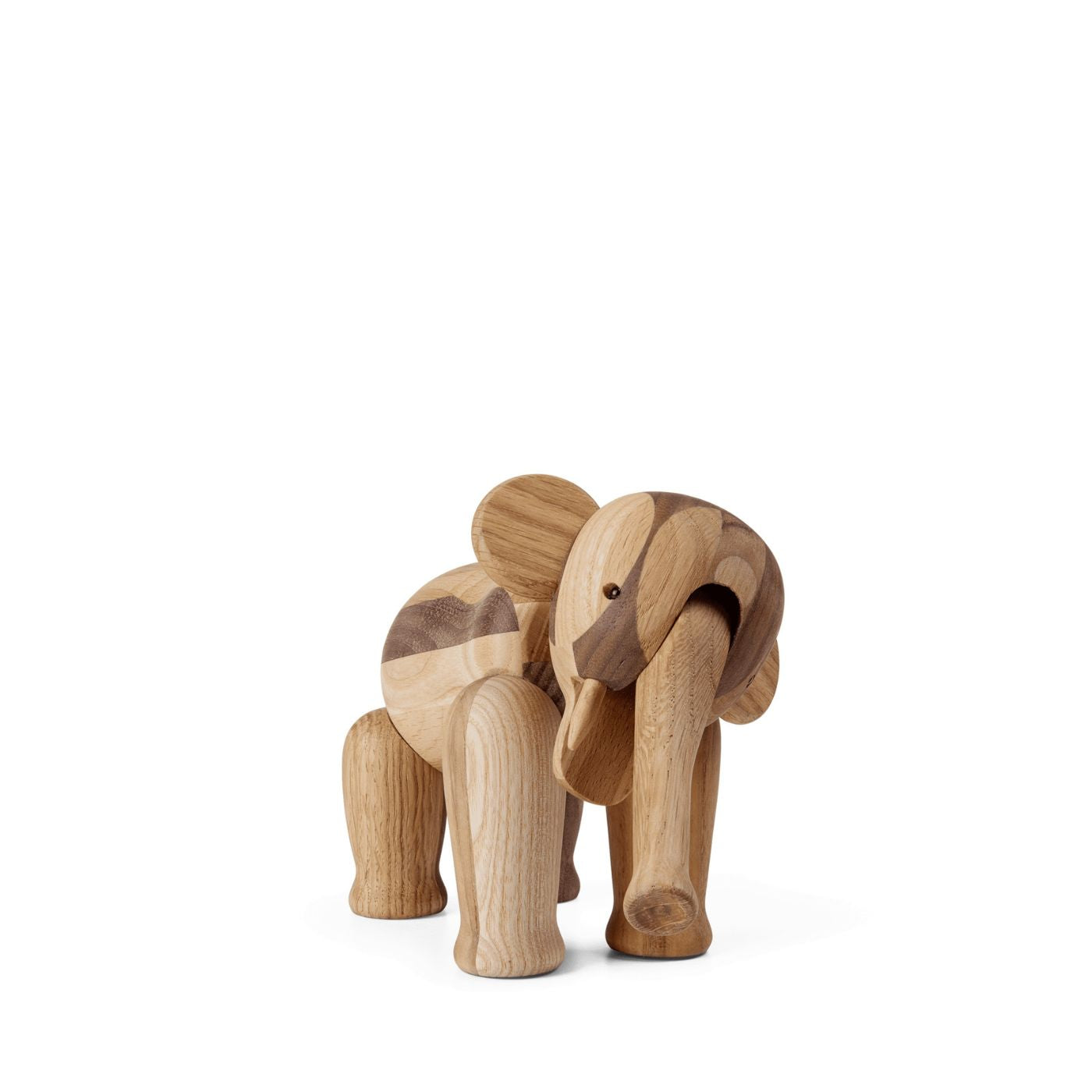 In 2023, Kay Bojesen’s iconic and beloved Elephant celebrates its 70th anniversary. We are celebrating the occasion with a Reworked Elephant – a special edition created from a wonderful mix of different wood types, such as teak, walnut, oak, ash and maple – all from surplus and residual wood. With a focus on upcycling and minimising resource waste, the Reworked Elephant has a new, modern and sustainable dimension, so that it not only acknowledges the past but also the future. With respect for the environment, the Reworked Elephant is made from residual wood, which means each Elephant will therefore look different depending on which types of wood are left over on the day they are produced. In other words, we cannot guarantee which types of wood each of the Reworked Elephants are made of. But we can guarantee that every single Elephant is even more unique than the original classic, if that's possible. The small Reworked Elephant measures 12.5 cm in height, has a 70th anniversary stamp under one foot and comes in a special wooden anniversary box.