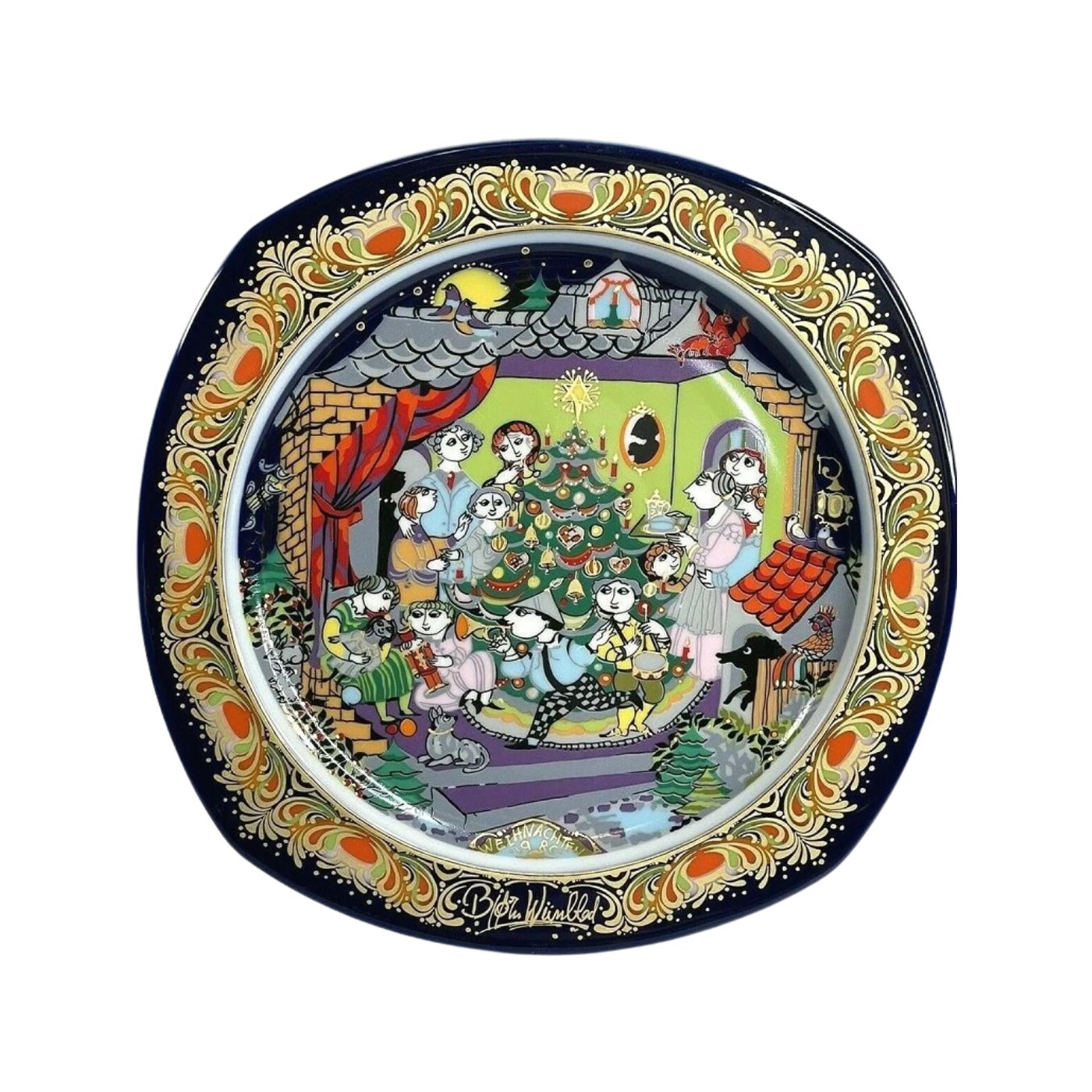 These annual plates began in 1971. Bjorn Wiinblad commented on his Christmas Carols collection: "In my work I draw inspiration mainly from two things: music and literature. It always gives me the greatest gift of pleasure to allow myself to be inspired by an opera or ballet. But it is not only the works of great musicians that inspire me. A "simple" folkong is just as charming and appearling. That's why, when Rosenthal asked me to design a new series, I decided to illustrate on porcelain a choice selection of the world's most beautiful Christmas carols."