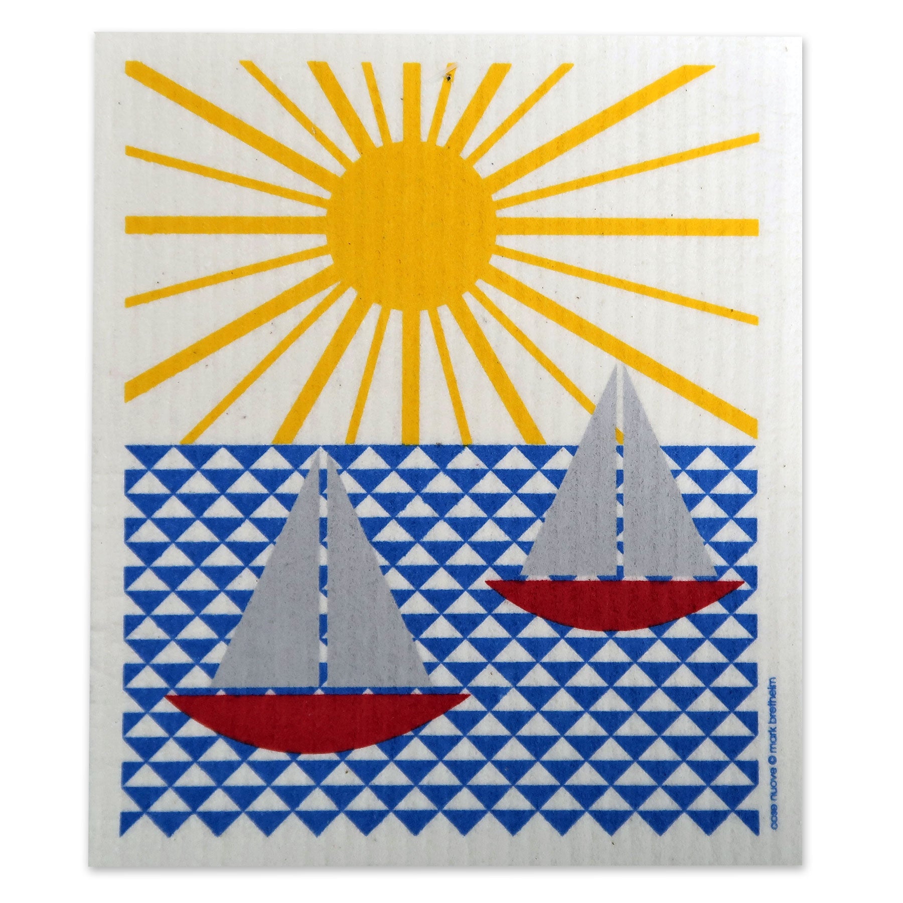This sponge-like cloth—with a colorful image of sailboats—softens when wet and is a lovely addition to any kitchen sink. Works great in the bathtub or shower too. Measures 6.75 x 8 inches.