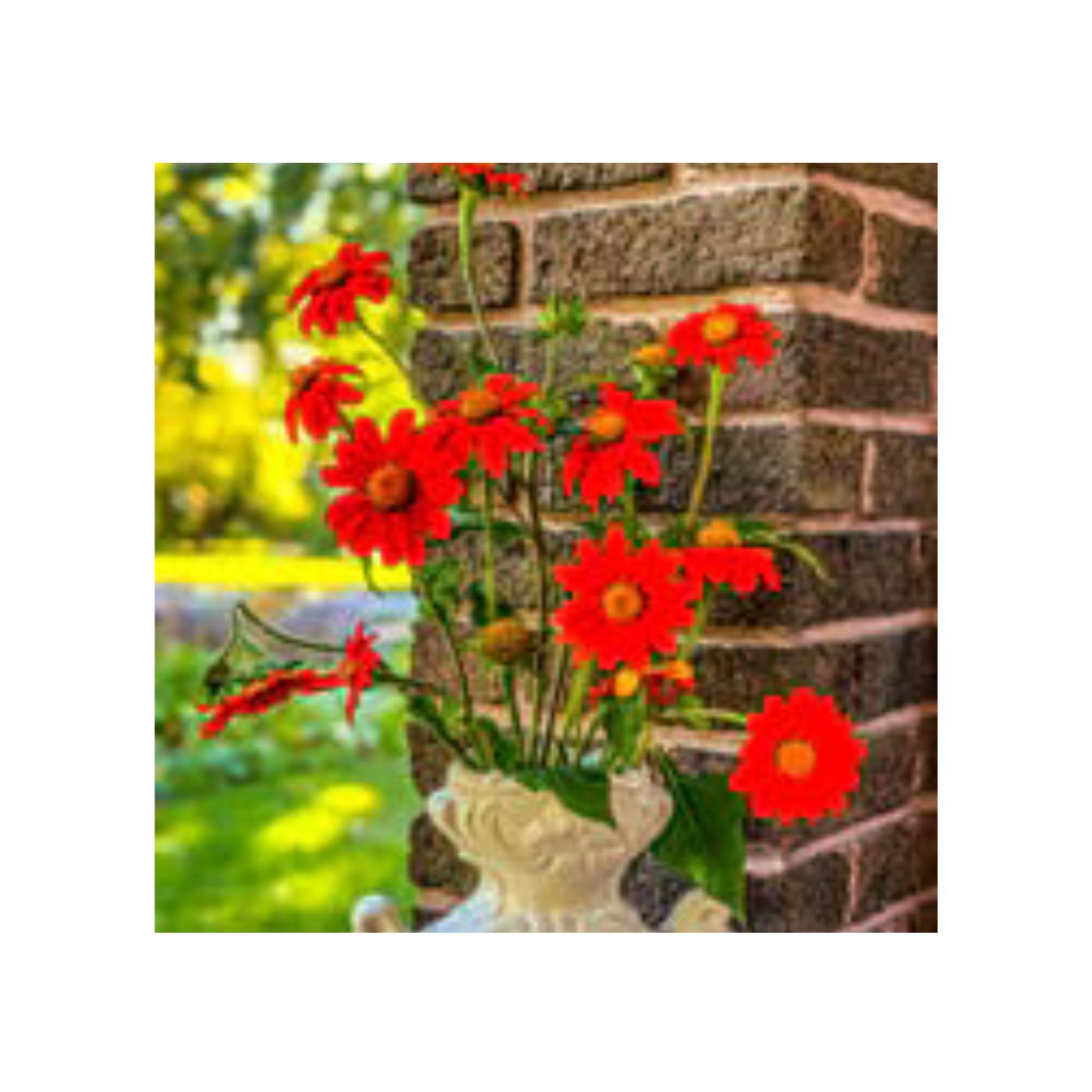 (aka Mexican Sunflower) Fiery orange 2-3" flowers attract lots of butterflies all summer long until frost. A favorite because of its extended bloom period. Nice for fresh arrangements. Branching plants grow 4-6' tall.