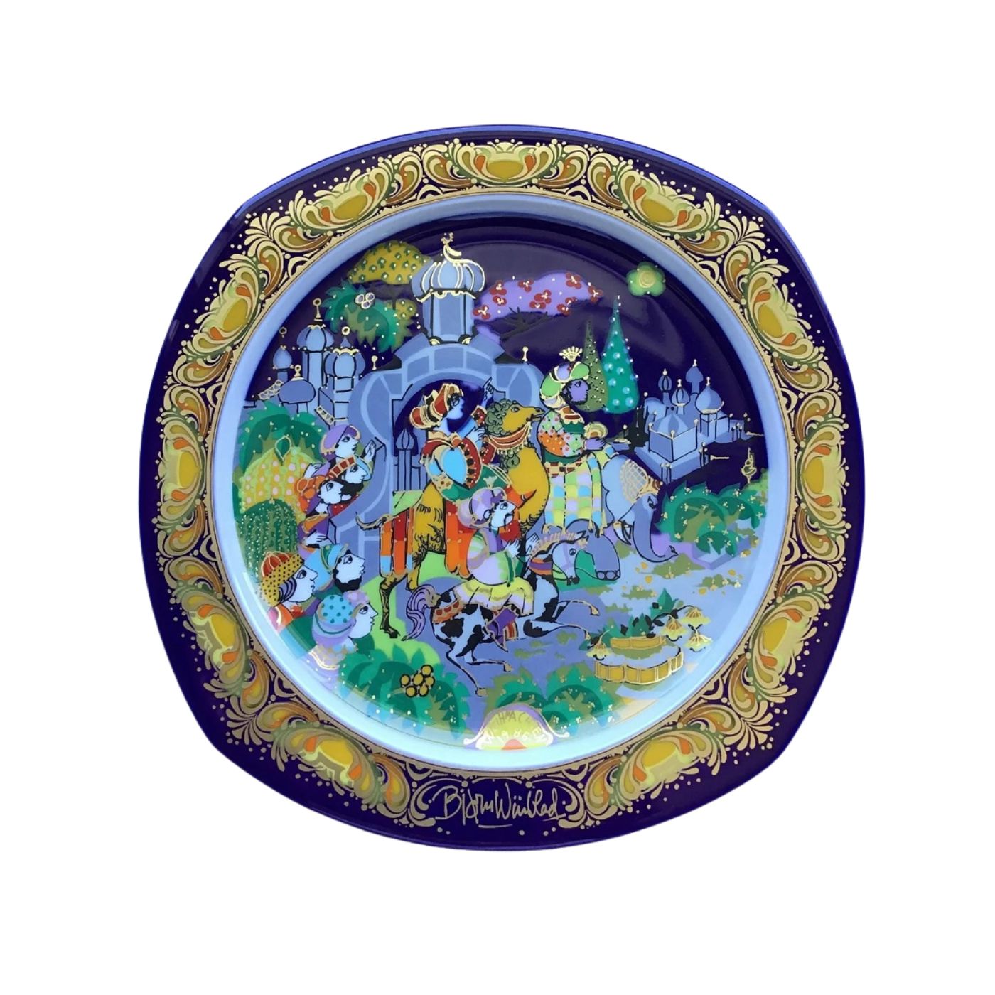 These annual plates began in 1971. Bjorn Wiinblad commented on his Christmas Carols collection: "In my work I draw inspiration mainly from two things: music and literature. It always gives me the greatest gift of pleasure to allow myself to be inspired by an opera or ballet. But it is not only the works of great musicians that inspire me. A "simple" folkong is just as charming and appearling. That's why, when Rosenthal asked me to design a new series, I decided to illustrate on porcelain a choice selection of the world's most beautiful Christmas carols."