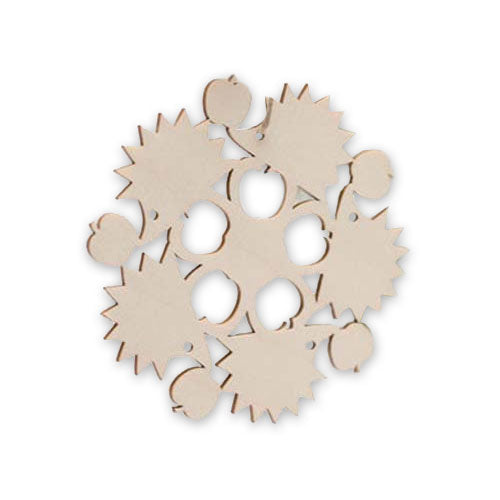 Once you take a closer look at this wood snowflake, you'll see the pattern is actually made up of hedgehogs and apples.